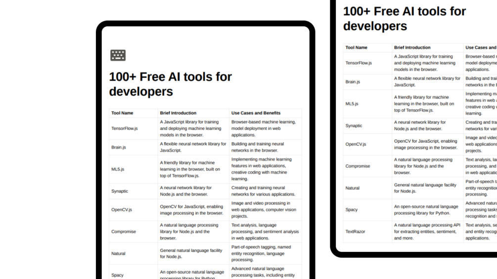 Experience a coding revolution with our comprehensive e-book! Packed with 100+ carefully curated and freely accessible tools, it's a treasure trove of innovation for developers.